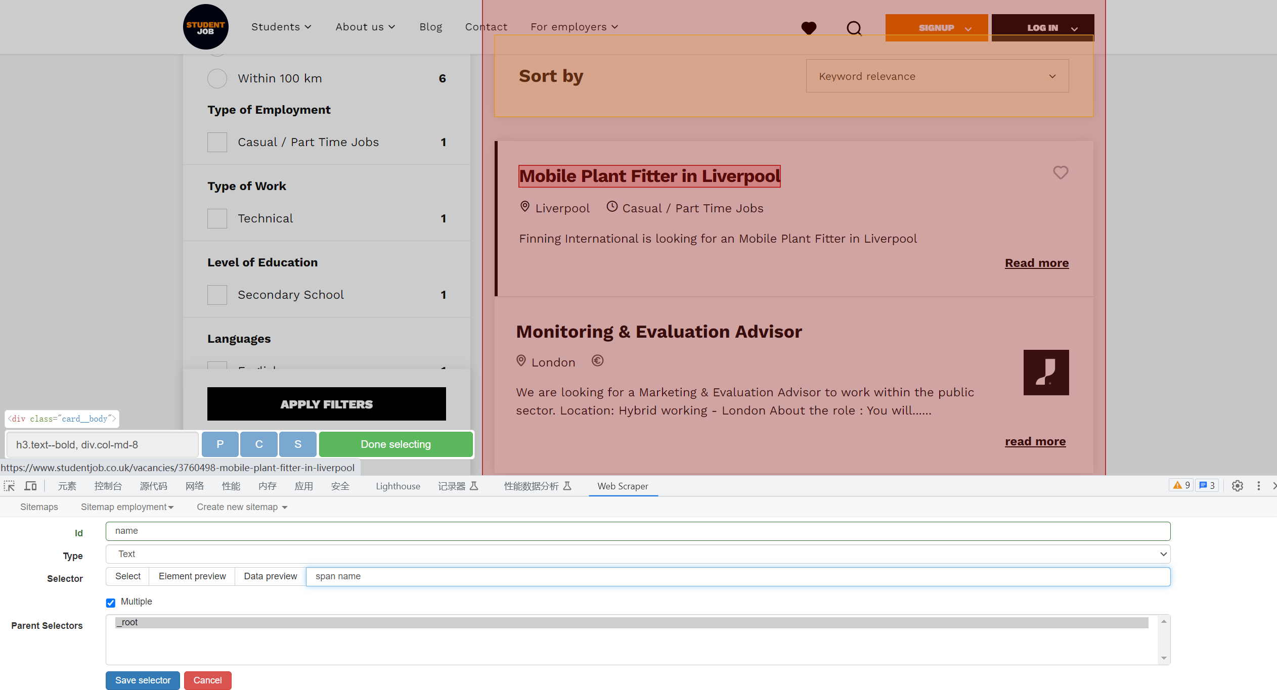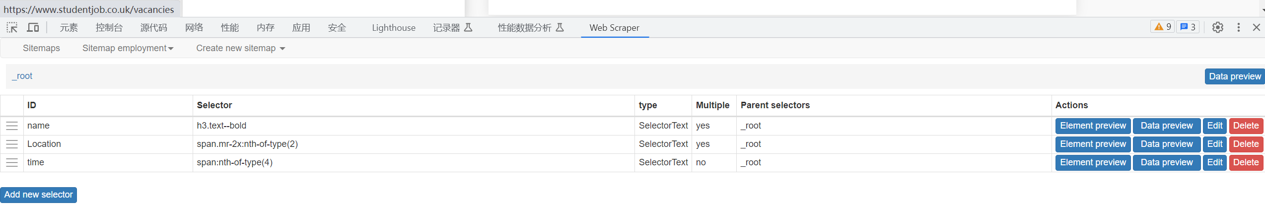 The following is a screenshot of me scraping a web page using Web Scraper.