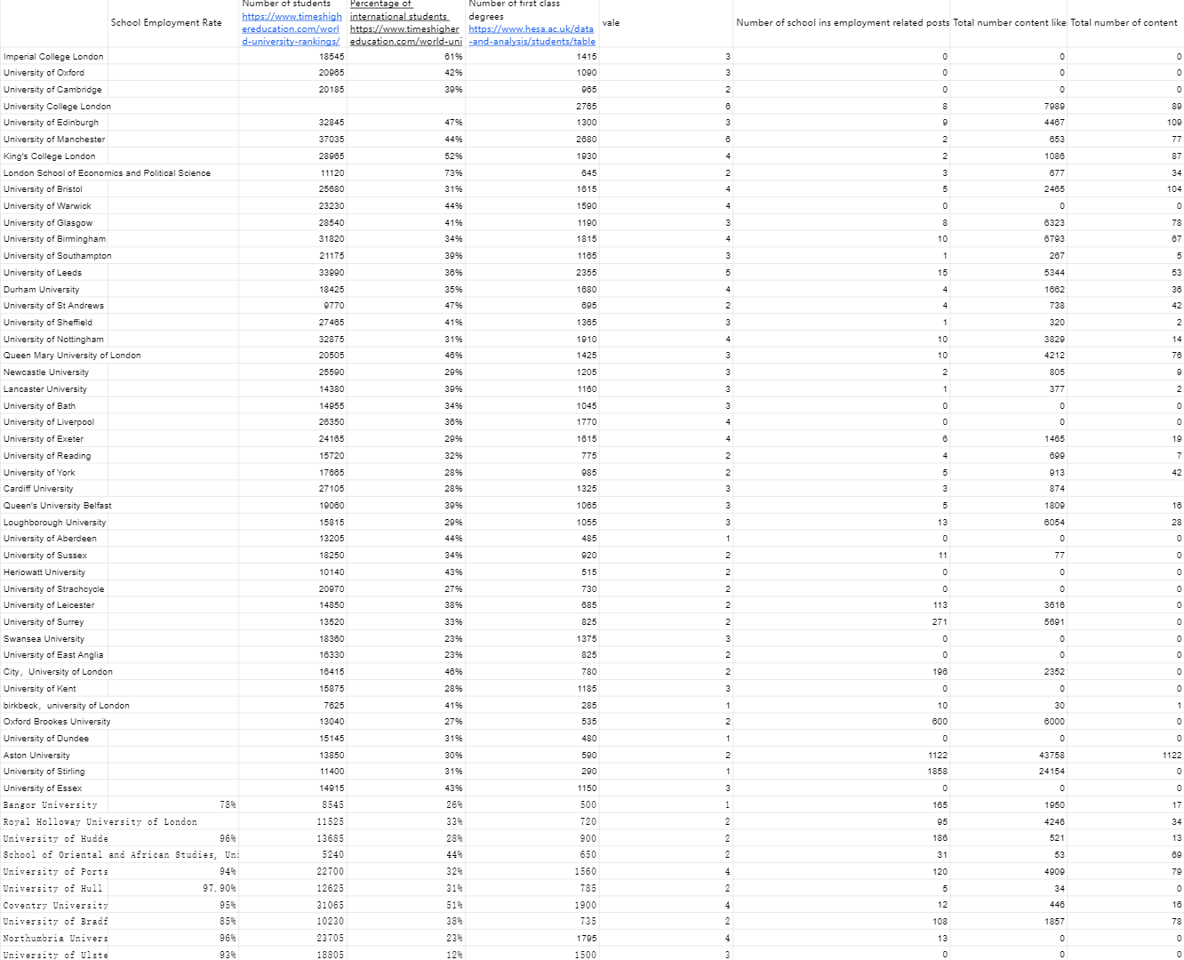 This workshop focuses on the effective visualisation of the data collected by the group, learning the definitions of ‘dataset’, ‘variable’ and ‘chart type’. In the group task, the employment of students at UK universities was collected with the aim of helping the audience to better understand the current digital engagement in the job market and related employment trends. Our audience is primarily university students, and we hope that the presentation of the data will help them gain a clearer understanding of the employment situation in different disciplines and regions, and thus inform their career planning. In order to motivate our audience to take action, we wanted them to not only think about the current state of the employment situation for UK university students, but also to realise the impact of digital skills on employment opportunities. Information that audiences need to understand includes: differences in employment rates across disciplines, growing trends in the demand for digital skills, and geographic variations in the job market. By presenting the data clearly and visually, viewers can see which disciplines have better job prospects and which may face greater challenges, and thus make more informed career planning or educational decisions.