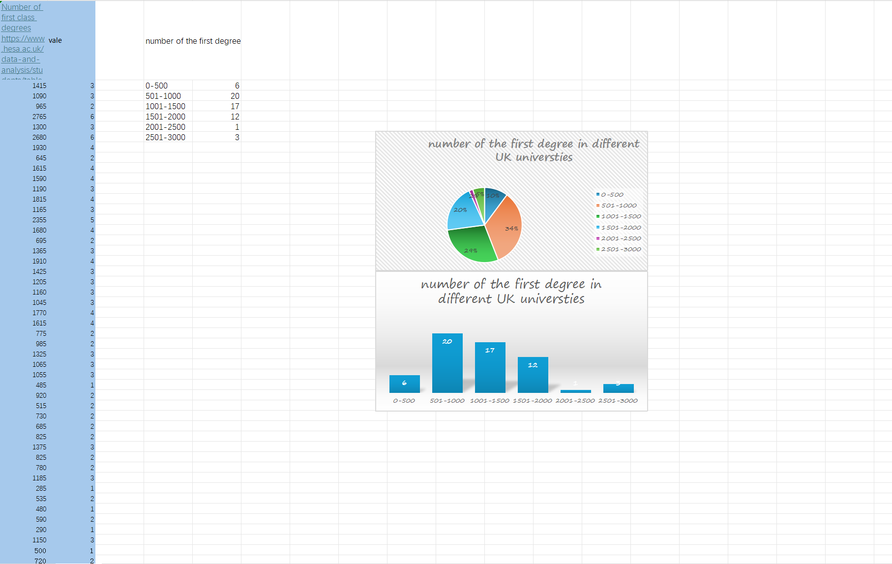 In a group task to present data in Excel, pie charts and bar graphs were produced. A screenshot of our group's visualisation is shown below. As highlighted by Kennedy and Hill, colour choice is important in visually communicating data. Although we were able to present the general trend of the data, the detail of the presentation and the colour scheme still appeared to be lacking in sophistication. Therefore changes were made to the colours to give the final result of the second image. In addition, Kennedy and Hill also pointed out that visualizations are enhanced by good annotation, I would analyse the background and context of the data in more depth, avoiding purely numerical presentations and adding more explanations and annotations, so that the audience can have a more comprehensive understanding of the meaning of the data.