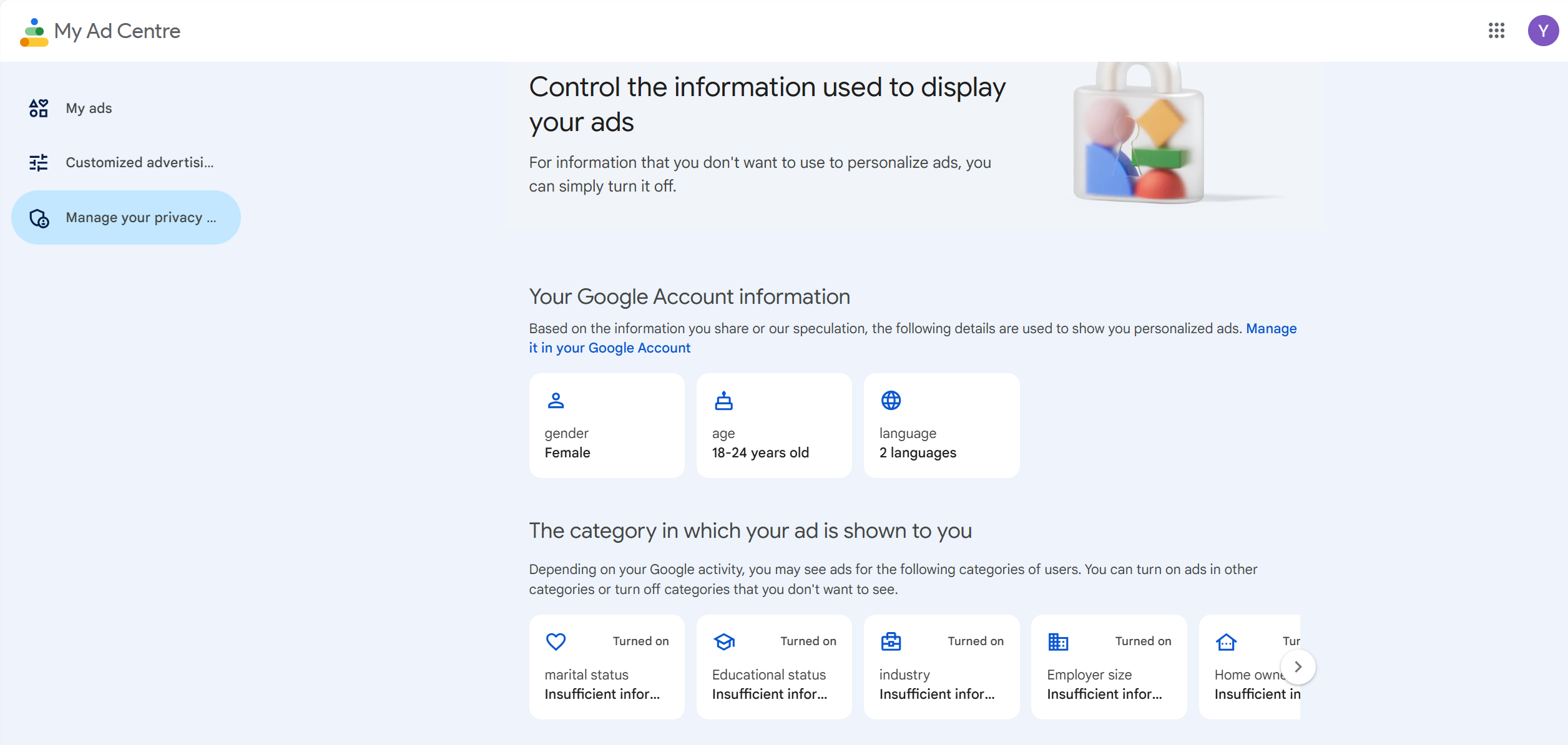 The output data reflects the platform's understanding of users. For example, I checked my Google ad profile to understand what data Google uses to decide which ads to push to us. This process revealed how the platform classifies us based on our search history, website visit records, and other activities. It also made me realize that although search engines bring us convenience, they invisibly limit users' power to obtain diverse information. At the same time, this made me reflect on whether I am too dependent on search results. In class, Holly also emphasized the importance of critical thinking. When using media, one can deliberately change behavioral data. Perhaps in the future, I will consider searching or watching more different content to avoid the control of algorithms.